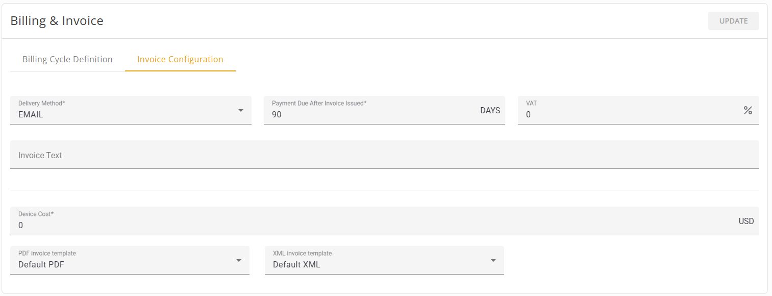These default invoice configuration parameters are automatically defined when you create a new sub-account.