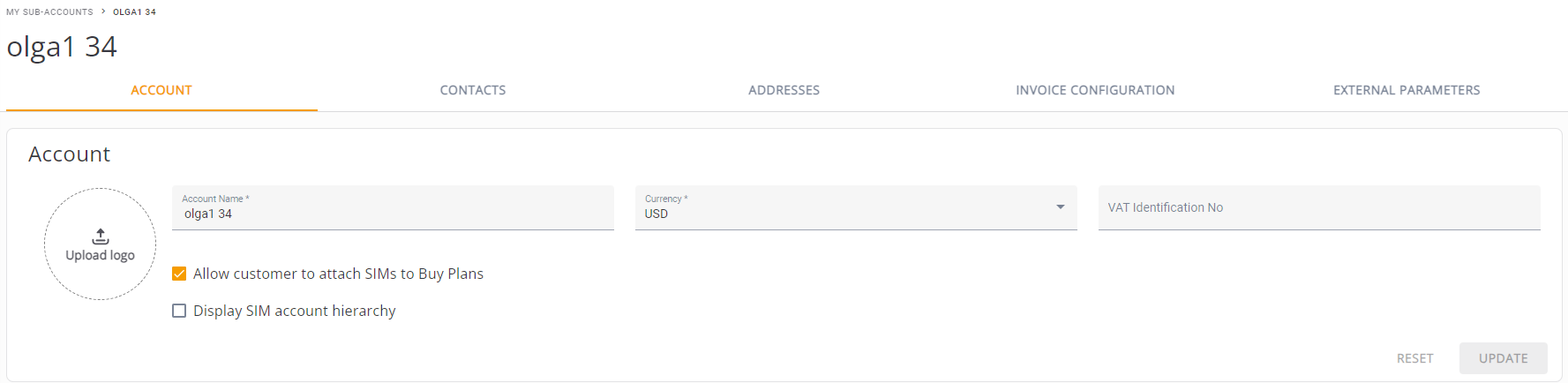 - Edit the Sub-Account details and click Update