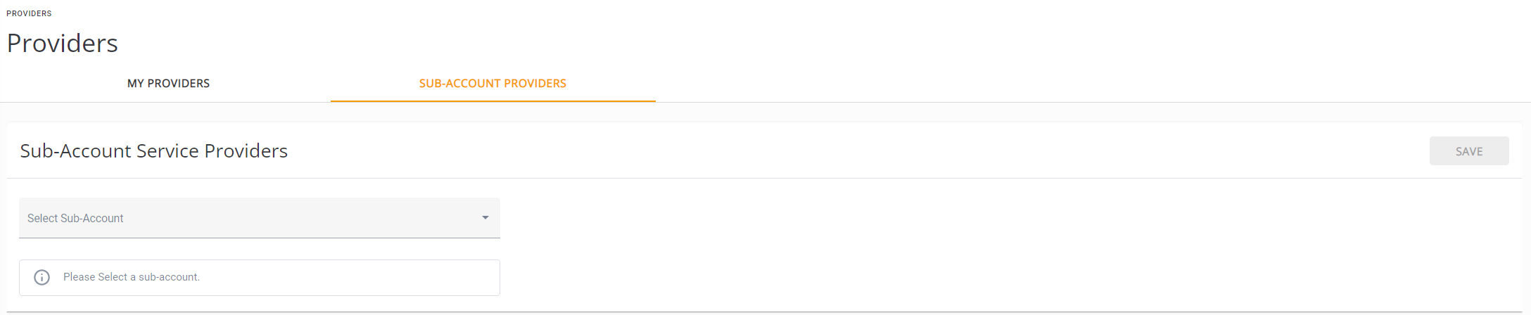 Providers Page Initial Sub-Account Providers Tab